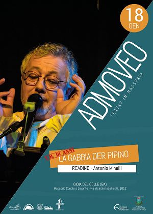 Il 18 gennaio 2020 con la performance “La gabbia der Pipino” si apre la rassegna Teatro in Masseria in Gioia del Colle patrocinata dal Assessorato alla Cultura del Comune.