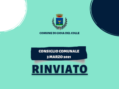 A seguito dell'Ordinanza Sindacale n. 17 del 28.02.2021, la seduta del Consiglio Comunale fissata per il giorno 3 marzo 2021 č rinviata a data da destinarsi.