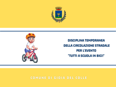 Con ordinanza odierna n. 36, il Comandante della Polizia Locale ha disposto l’istituzione del temporaneo servizio di dirottamento del traffico veicolare in occasione dell’evento “Tutti a scuola in bici”, che si svolgerà domani, sabato 5 Giugno 2021, a partire dalle ore 7:20.