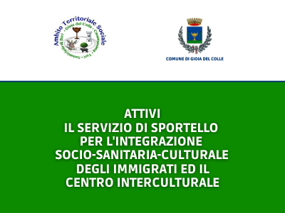 In riferimento all’azione progettuale “Incontrarsi a…Sud”, volta a promuovere e consolidare l’integrazione delle persone straniere sul territorio, l’Ambito Territoriale Sociale di Gioia del Colle ha attivato il servizio di Sportello per l’integrazione socio-sanitaria-culturale degli immigrati ed il Centro Interculturale.