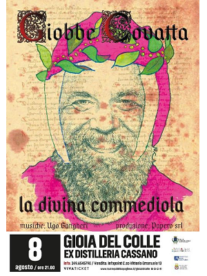 Continuano gli appuntamenti di “Joha AEStaS 2021”: domenica 8 agosto presso l' ex Distilleria Cassano arriva Giobbe Covatta con il suo monologo dal titolo “La Divina Commediola”. L'attore propone uno spettacolo attraverso il quale offre la sua personale versione della Divina Commedia, dedicata ai diritti dei minori, immaginando l'inferno come luogo di eterna detenzione non per i peccatori, ma per le loro vittime!
