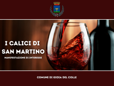 In occasione della Festa di san Martino, l’Amministrazione comunale di Gioia del Colle intende organizzare l’evento intitolato “I calici di san Martino” all’interno del centro storico cittadino.