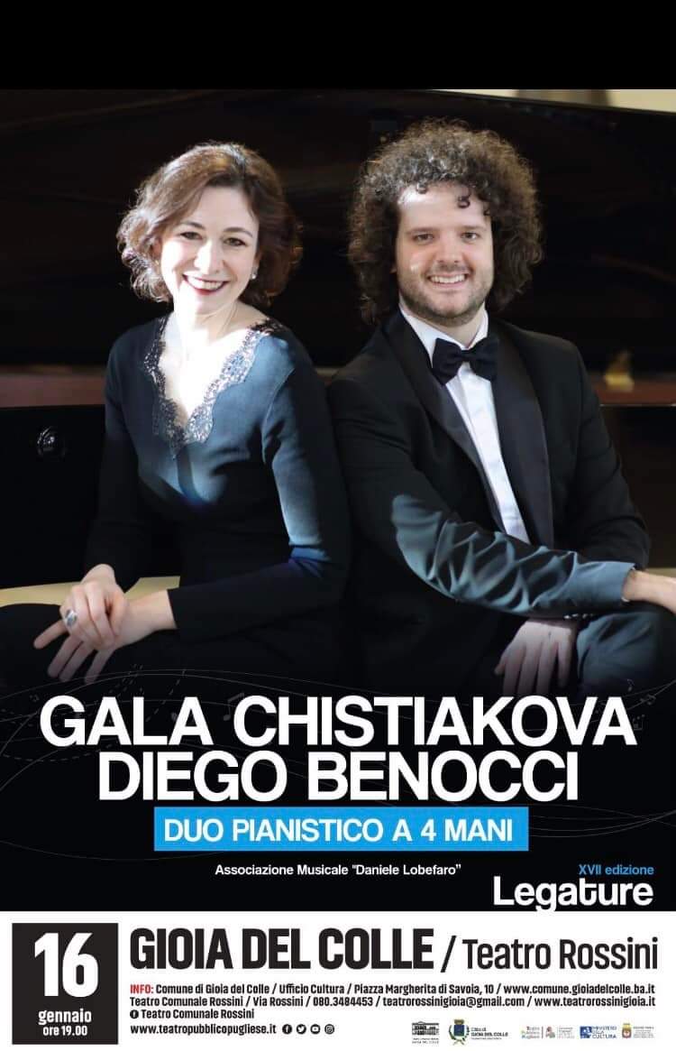 Sarà il concerto del duo pianistico Gala Chistiakova & Diego Benocci ad inaugurare la XVII edizione della rassegna musicale Legature a cura dell’Associazione Musicale “Daniele Lobefaro”.