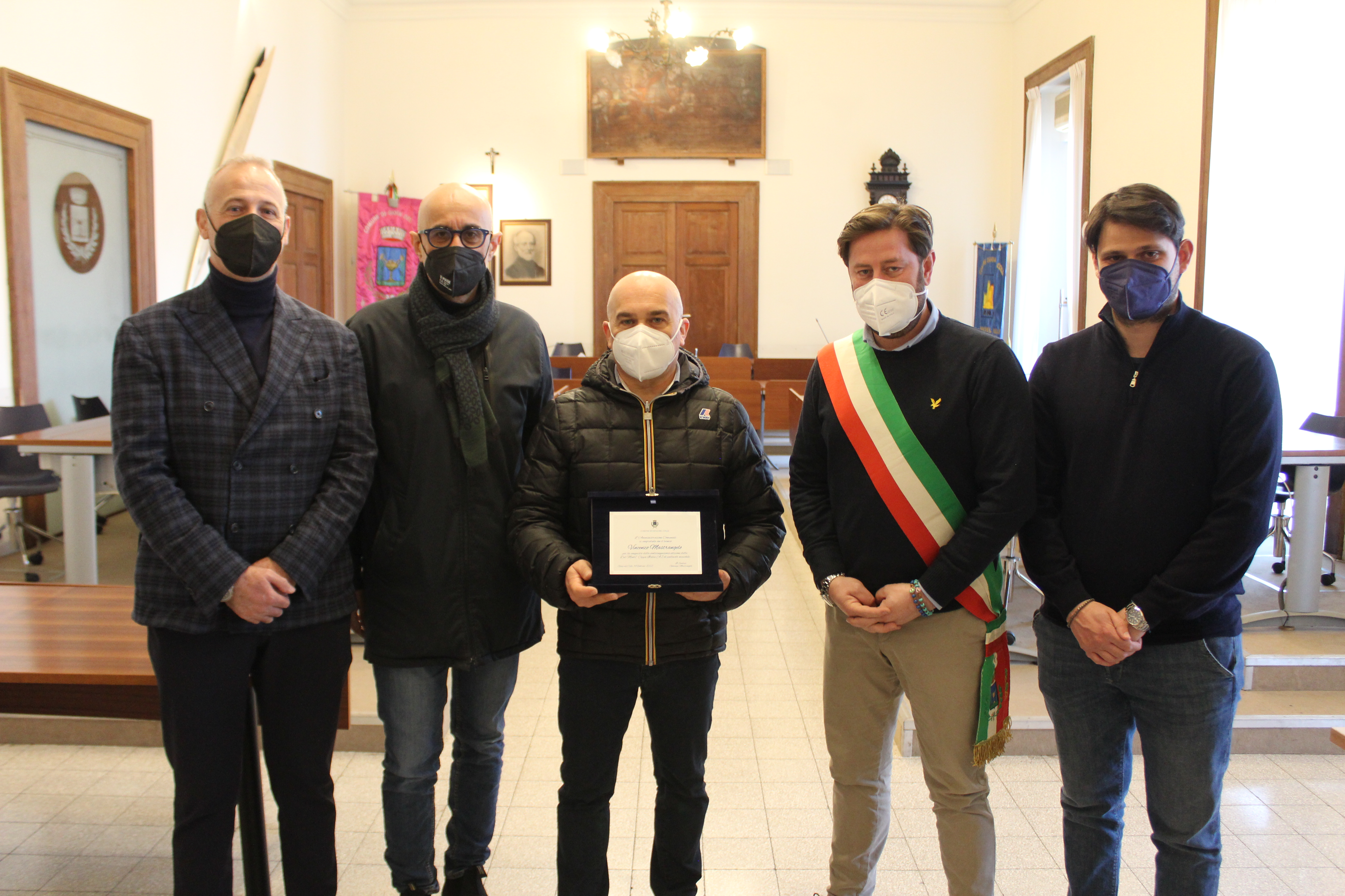 In mattinata il sindaco Giovanni Mastrangelo ed il vicesindaco con delega allo Sport Giuseppe Gallo, assieme ad una rappresentanza del Consiglio comunale, hanno accolto nell'aula consiliare il tecnico Vincenzo Mastrangelo, neo vincitore della Del Monte Coppa Italia A2 di pallavolo maschile alla guida della Volley Tricolore Reggio Emilia.