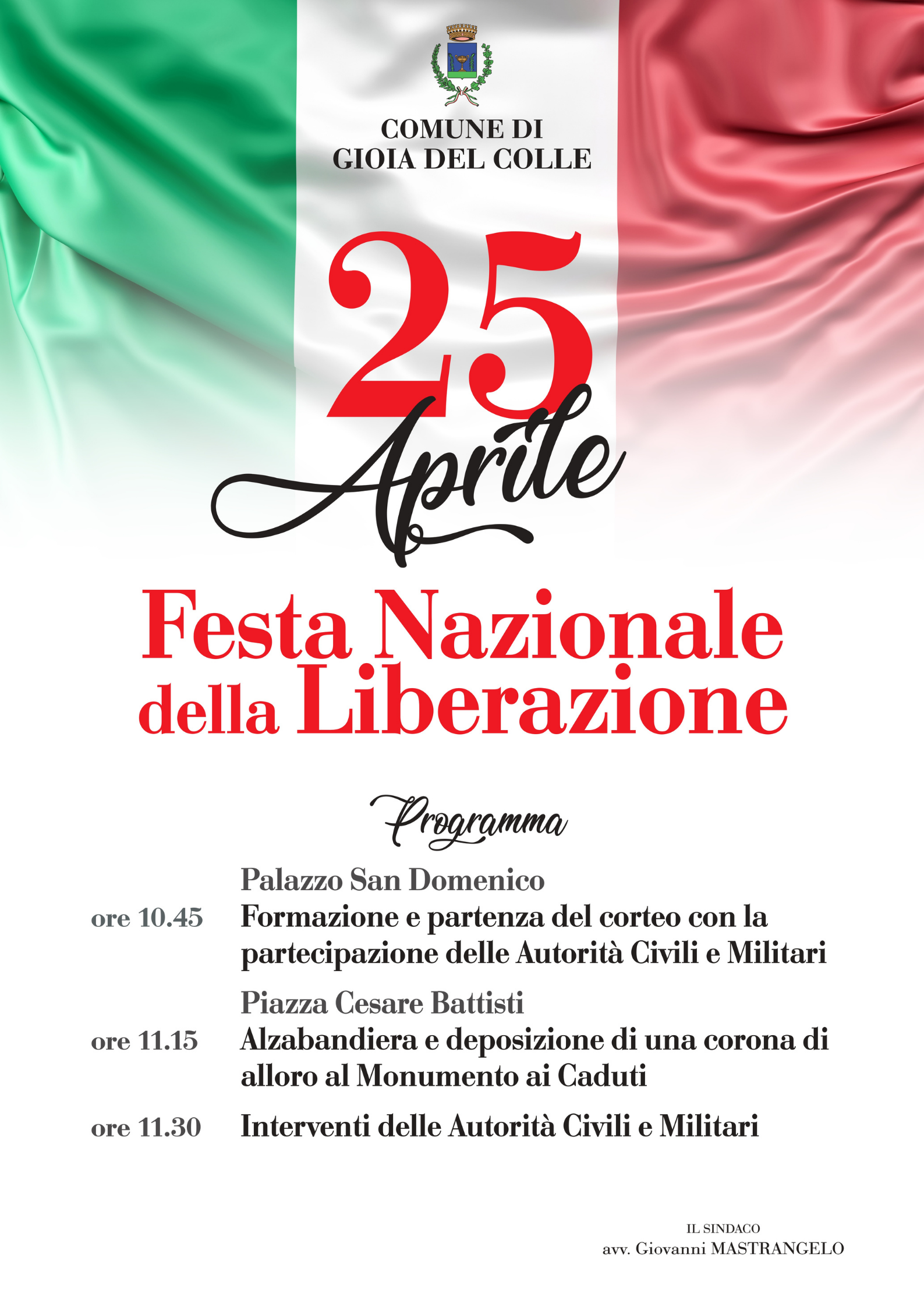 Lunedì 25 aprile si svolgeranno le solenni celebrazioni per il 77° anniversario della Liberazione dell’Italia dal regime fascista e dall’occupazione nazista.