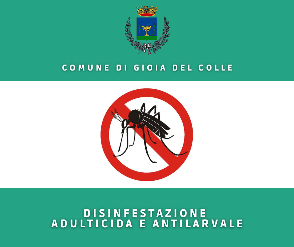 Domani, mercoledì 20 luglio 2022, a partire dalle ore 23:30, sarà eseguito l'intervento di disinfestazione adulticida e antilarvale sull'intero territorio comunale.