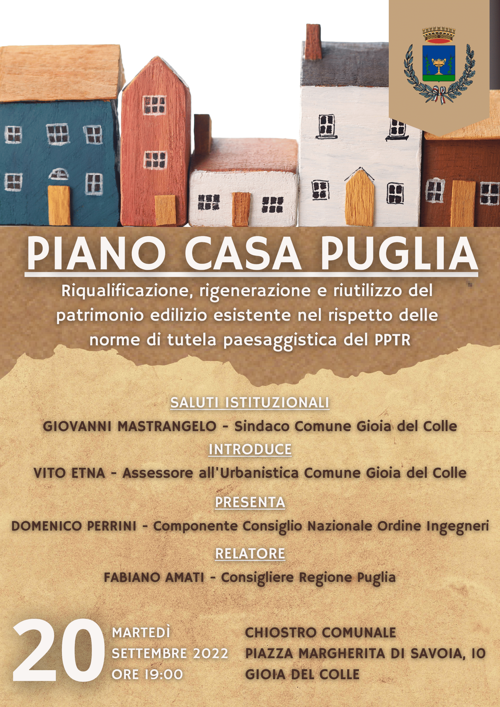 Martedì 20 settembre 2022, alle ore 19.00, nel Chiostro di Palazzo San Domenico, si terrà una conferenza pubblica per la presentazione della L.R. 20/2022 (NUOVO PIANO CASA – ECO CASA).