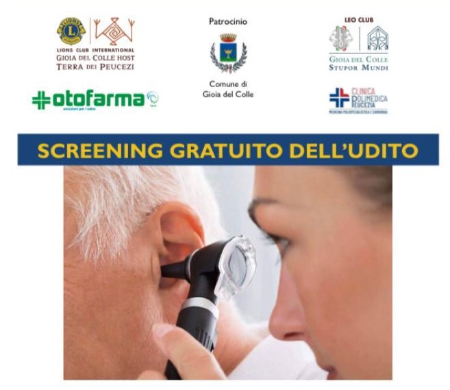 Grazie all’iniziativa del Lions Club “Gioia del Colle Host”, patrocinata dall’Amministrazione comunale, sabato 22 ottobre, nella sala De Deo di Palazzo San Domenico, si svolgerà uno screening gratuito dell’udito dedicato alle persone anziane.