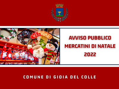 Si informano gli operatori commerciali interessati che, per l’anno 2022, i tradizionali “MERCATINI DI NATALE”, previsti dal “PIANO COMUNALE DEL COMMERCIO SU AREE PUBBLCHE” approvato con deliberazione del Consiglio Comunale n. 37/2021, si svolgeranno nelle seguenti domeniche: 27 novembre e 04 – 11 – 18 dicembre in via Ricciotto Canudo, come da Ordinanza n.70 del Responsabile Area Urbanistica - Suap;