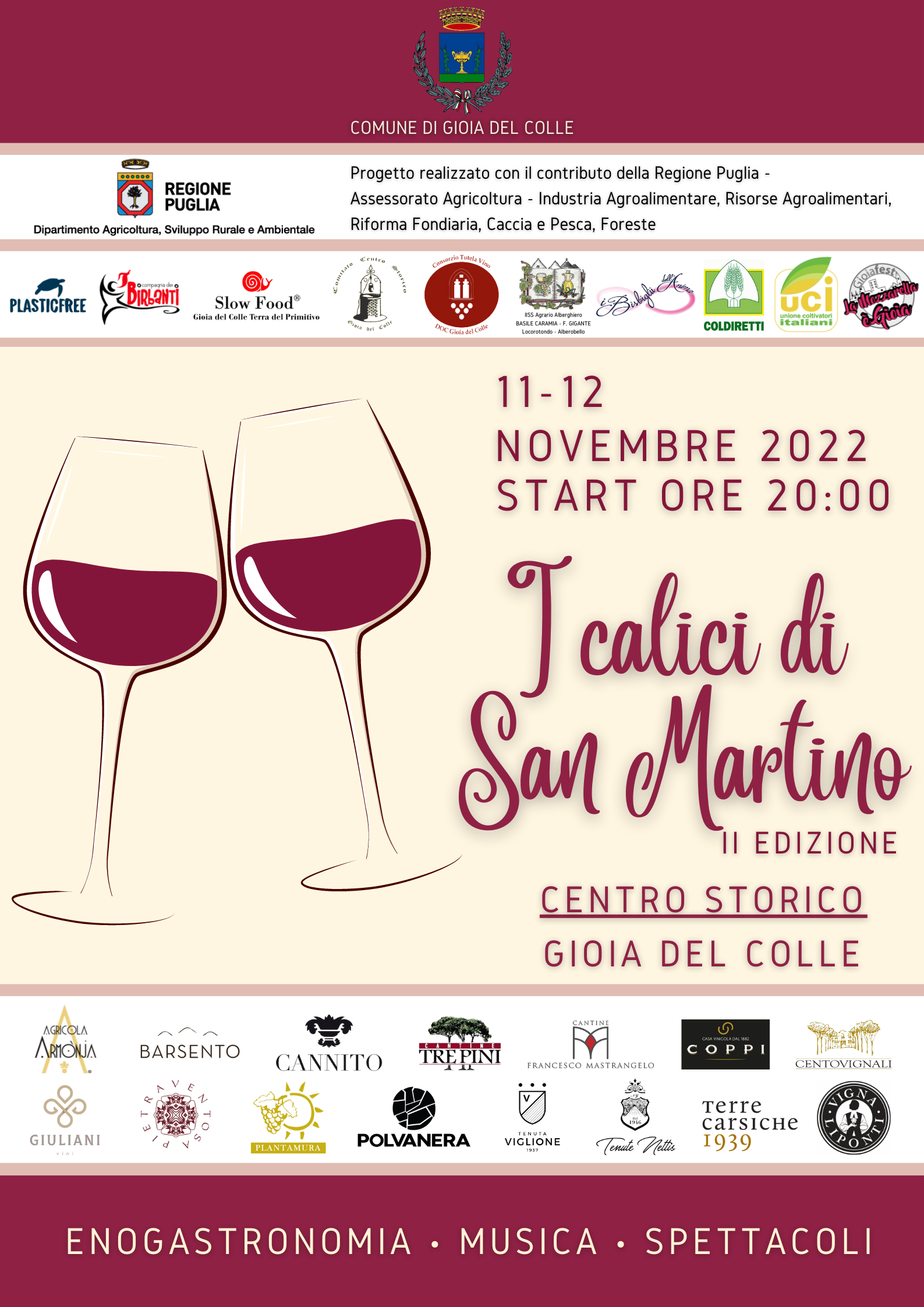 È tutto pronto a Gioia del Colle per la seconda edizione de “I calici di San Martino”.