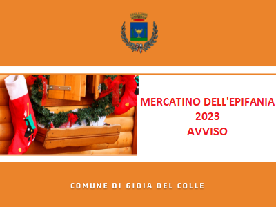 Si informano gli operatori commerciali interessati che, è volontà di questa Amministrazione far svolgere il tradizionale “MERCATINO DELL’EPIFANIA” previsto dal PIANO COMUNALE DEL COMMERCIO SU AREE PUBBLCHE” approvato con deliberazione del Consiglio Comunale n. 37/2021, nella serata del 5 gennaio 2023 dalle ore 16.00 alle ore 24.00;