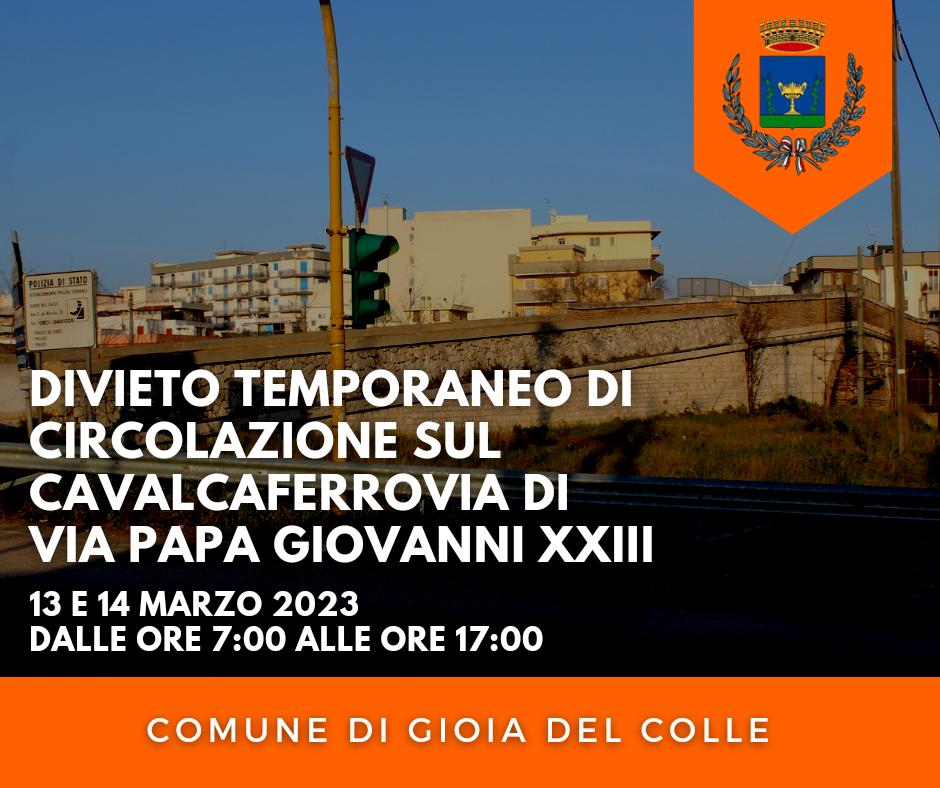 Si informa la cittadinanza che, con ordinanza n. 6 del 3 marzo 2023, il Comandante della Polizia Locale ha disposto per i giorni ?? ? ?? ????? ????, ????? ??? ?:?? ???? ??? ??:??, ?? ??????? ?????????? ?? ???????????? ??? ??????????????? ?? ??? ???? ???????? ?????, al fine di consentire l'esecuzione di saggi conoscitivi propedeutici al prossimo intervento di riqualificazione.