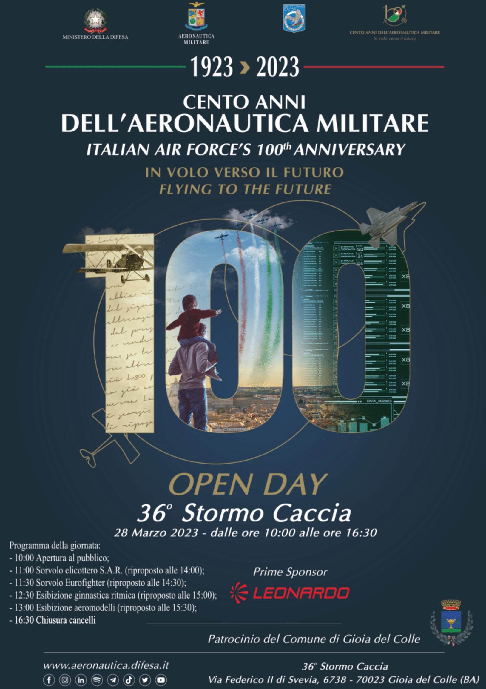 In occasione dell’Open Day organizzato dal 36° Stormo Caccia di Gioia del Colle per celebrare il centenario della costituzione dell’Aeronautica Militare, per il giorno 28 marzo è stato istituito un servizio di trasporto gratuito che consentirà alla cittadinanza di raggiungere la base militare e partecipare alle attività programmate nel corso della mattinata.