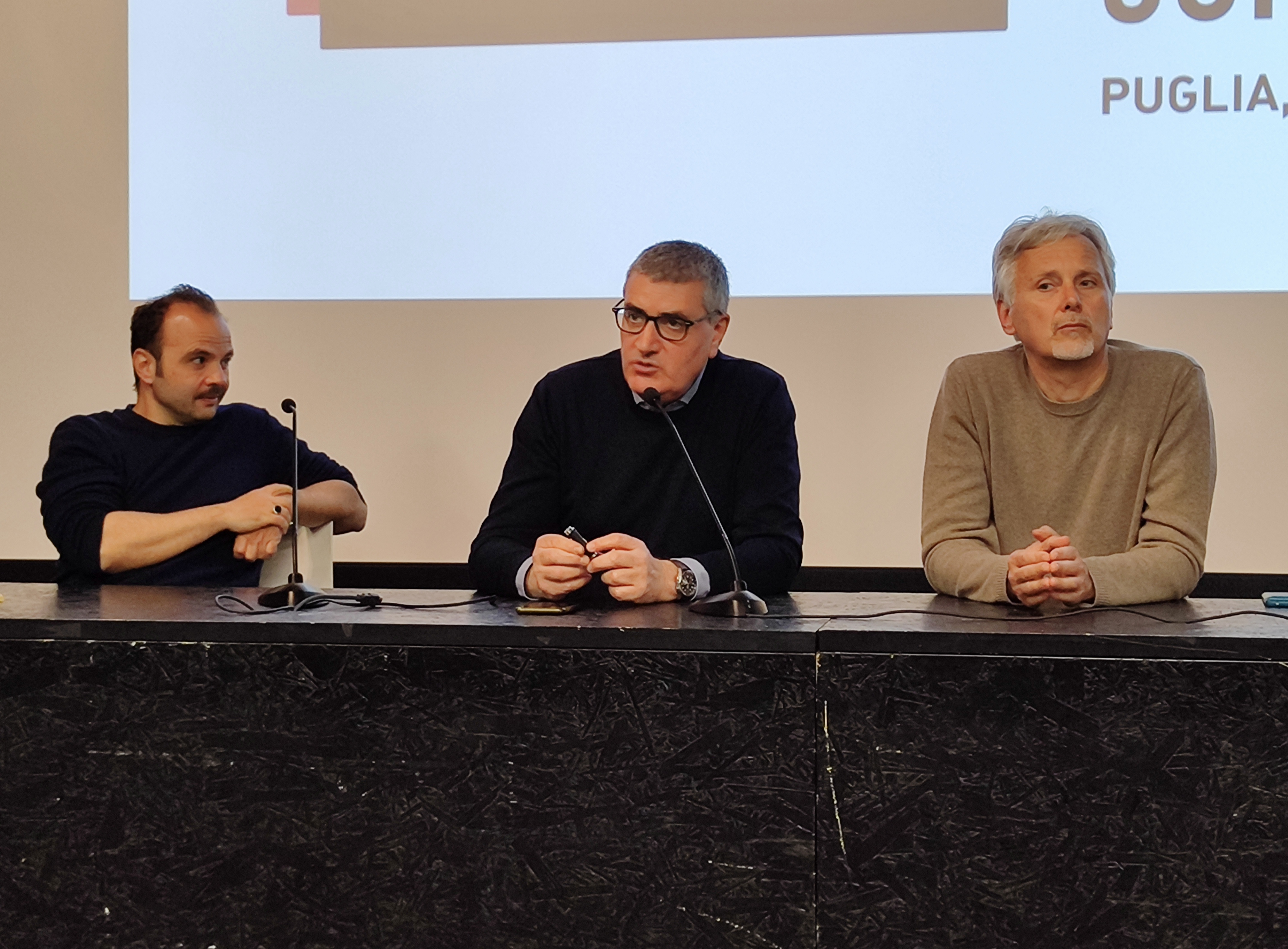 La conferenza stampa si è svolta alla presenza dei registi Cristiano Bortone e Daniela Porto, dei protagonisti del film Ludovica Martino e Marco Leonardi, dell’assessore alla Cultura del comune di Gioia del Colle Lucio Romano e del direttore generale di Apulia Film Commission Antonio Parente.