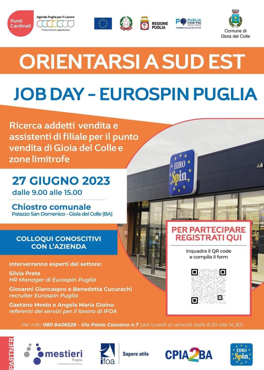 Martedì 27 Giugno alle 09:30, partecipa al Job Day Eurospin: partono le selezioni per nuove assunzioni nei supermercati di Gioia Del Colle e paesi strettamente limitrofi!