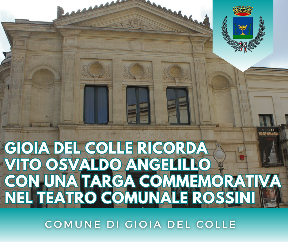 In occasione del decimo anniversario della scomparsa del regista e poeta Vito Osvaldo Angelillo, l’Amministrazione comunale, accogliendo la richiesta dell’UTE, ha deciso di omaggiare la memoria del drammaturgo e commediografo gioiese con una cerimonia all'interno del Teatro comunale Rossini.
