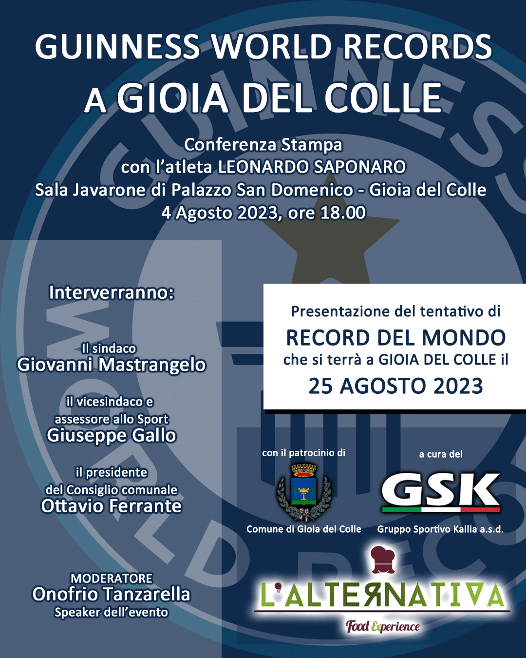 Nel corso della conferenza stampa, che si svolgerà alla presenza dell’atleta originario di Ceglie Messapica, interverranno: