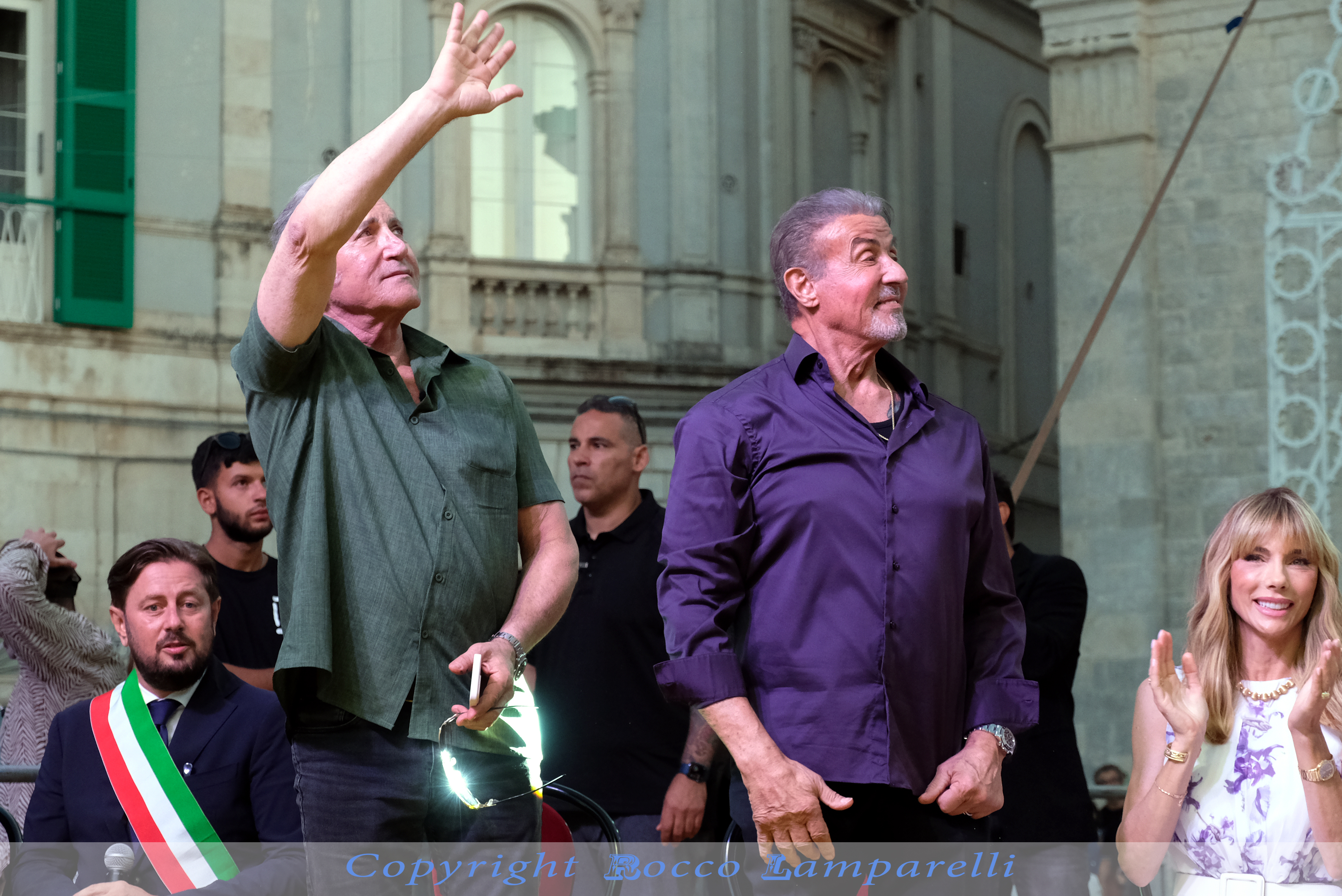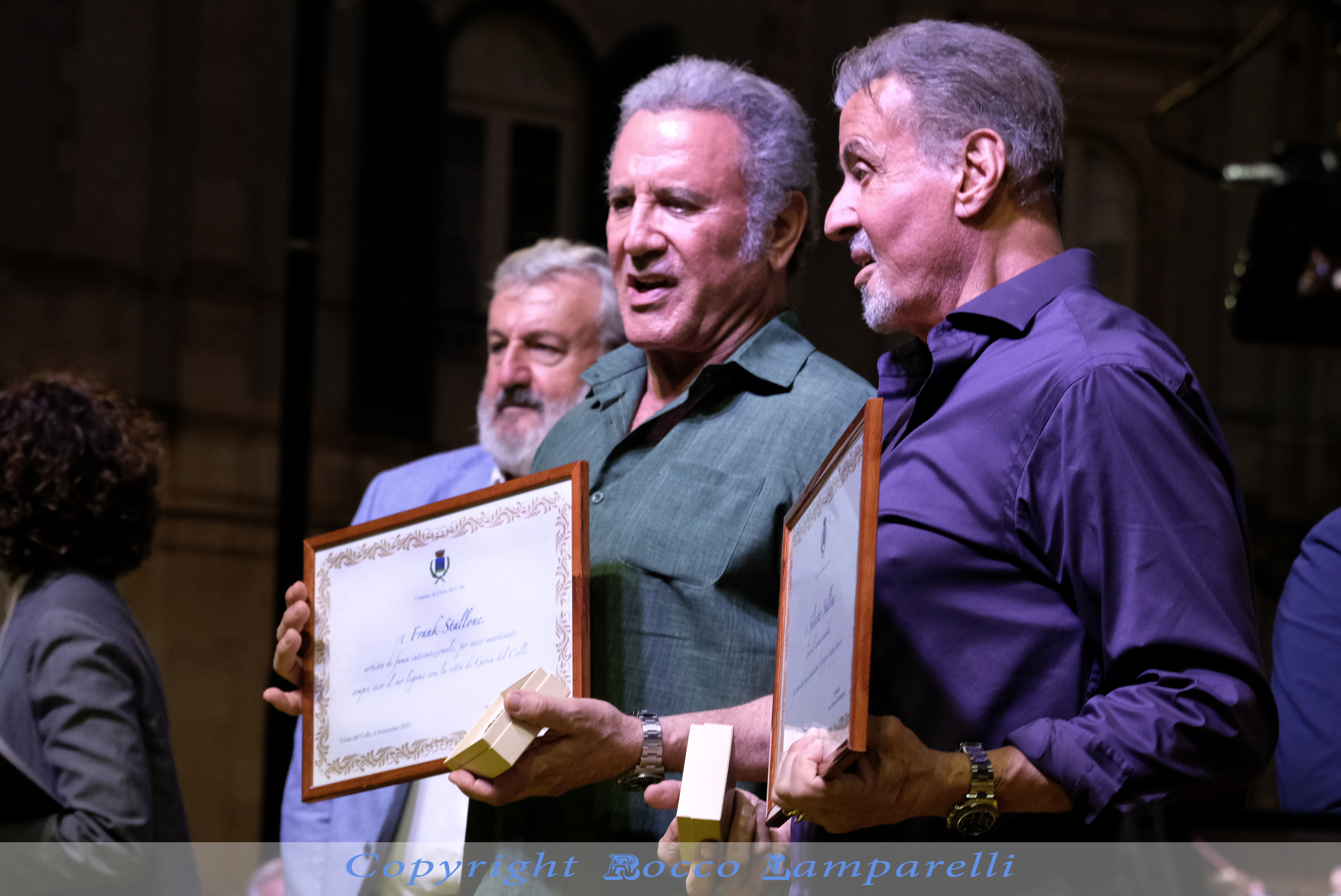 Nel corso della cerimonia pubblica celebratasi ieri in una piazza Plebiscito gremita di gente, la star di Hollywood Sylvester Stallone e suo fratello Frank, noto musicista e cantautore, hanno ricevuto la cittadinanza onoraria di Gioia del Colle, deliberata all'unanimità dal Consiglio comunale nella seduta di martedì 5 settembre 2023.