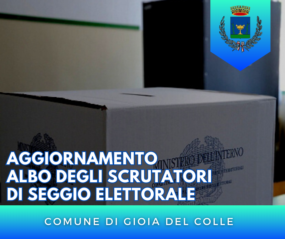 Si informa, tutti gli elettori ed elettrici del Comune, in possesso, almeno del titolo di studio della scuola dell’obbligo, che desiderano essere inseriti nell’albo unico comunale delle persone idonee all’ufficio di scrutatore di seggio elettorale dovranno presentare domanda dal 02 Ottobre al 30 Novembre.