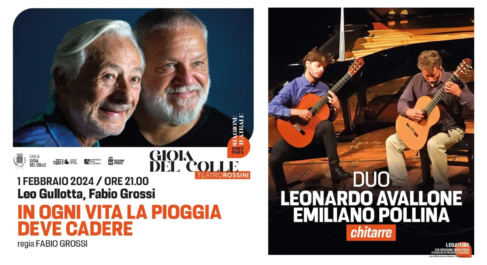 Al Teatro comunale Rossini sono in arrivo due nuovi appuntamenti della stagione di prosa e musica 2023/24, realizzata dal comune di Gioia del Colle in collaborazione con il Teatro Pubblico Pugliese.