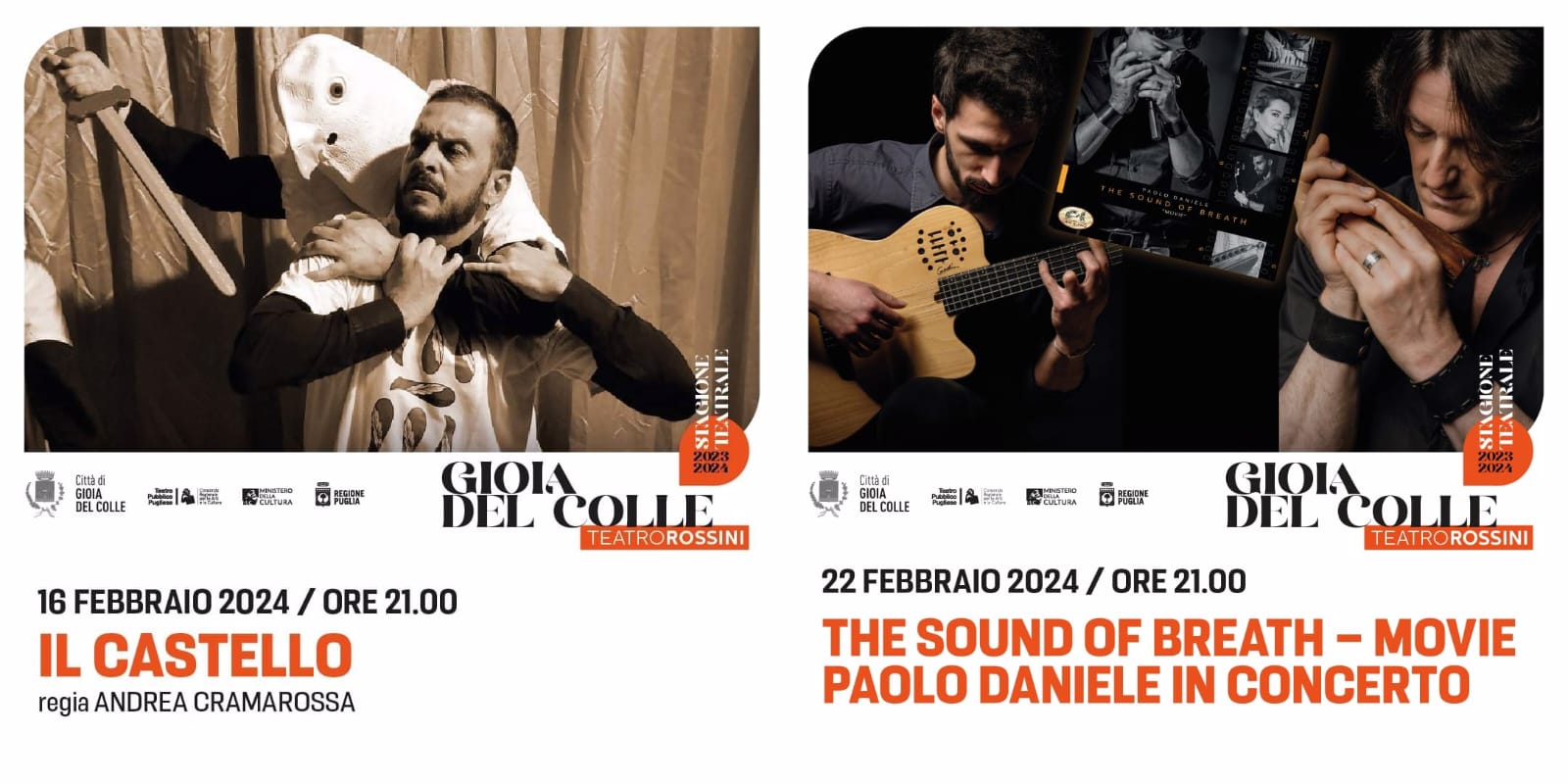 Dopo le magistrali recitazioni di Leo Gullotta e Fabio Grossi nella pièce "In ogni vita la pioggia deve cadere" e le performances musicali del duo chitarristico composto da Leonardo Avallone ed Emiliano Pollina, la stagione 2023/24 prosegue con lo spettacolo "Il castello” che, prodotto dal Teatro delle Bambole, venerdì 16 febbraio sarà proposto in matinée (apertura sipario ore 10:00) per le scuole secondarie di secondo grado di Gioia del Colle e in orario serale (apertura sipario ore 21:00).