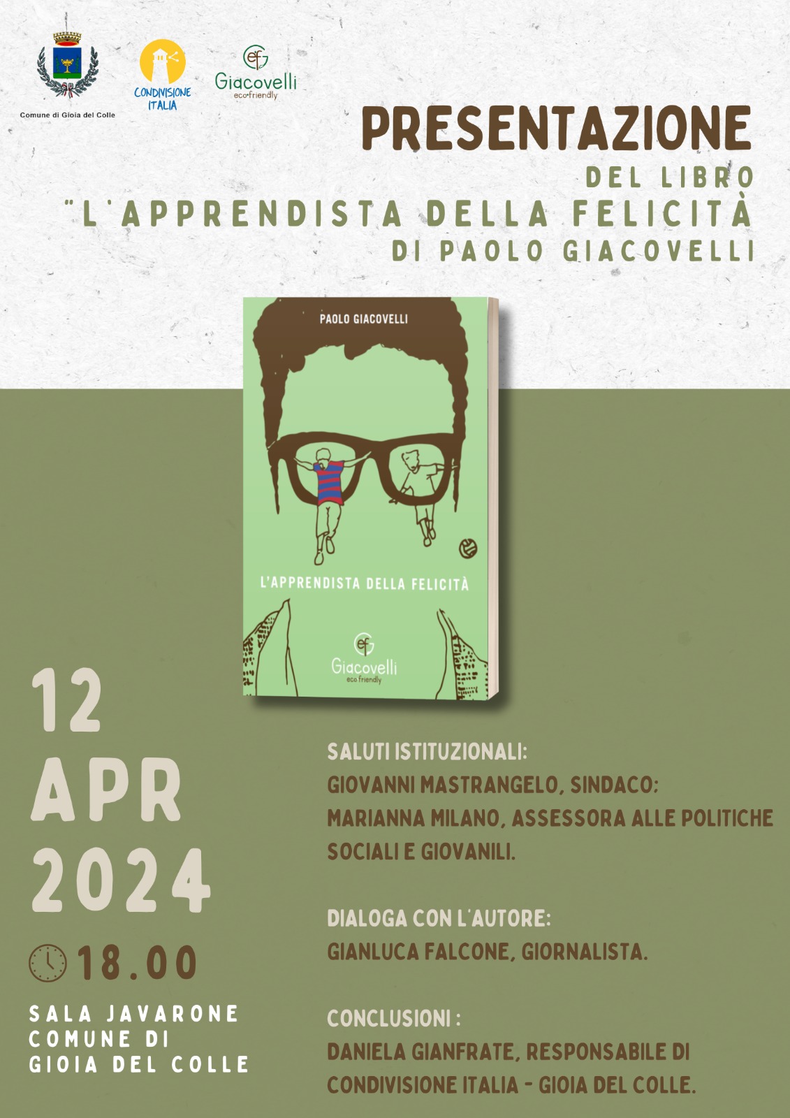 Venerdì 12 aprile 2024, alle ore 18:00, nella sala Javarone di Palazzo San Domenico si terrà la presentazione dell'ultimo romanzo di Paolo Giacovelli dal titolo "L'apprendista della felicità".