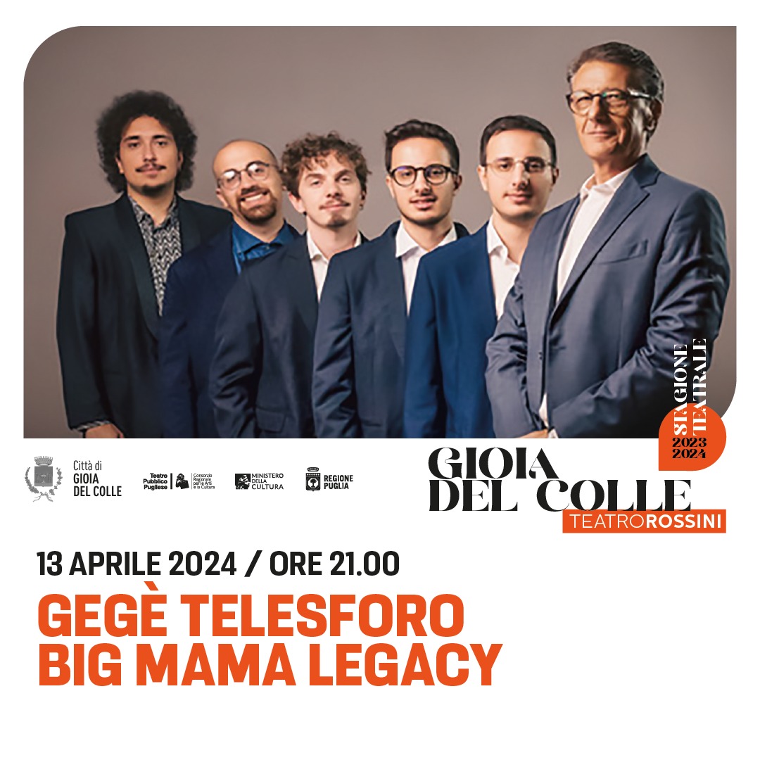 La stagione 2023/2024 del Teatro comunale Rossini si avvia alla conclusione con il settimo sold out, fatto registrare dal concerto in programma domani, sabato 13 aprile 2024, ore 21:00, che vedrà protagonista sul palco il famoso conduttore, polistrumentista, compositore e produttore discografico Gegè Telesforo con il suo nuovo album "Big Mama Legacy".