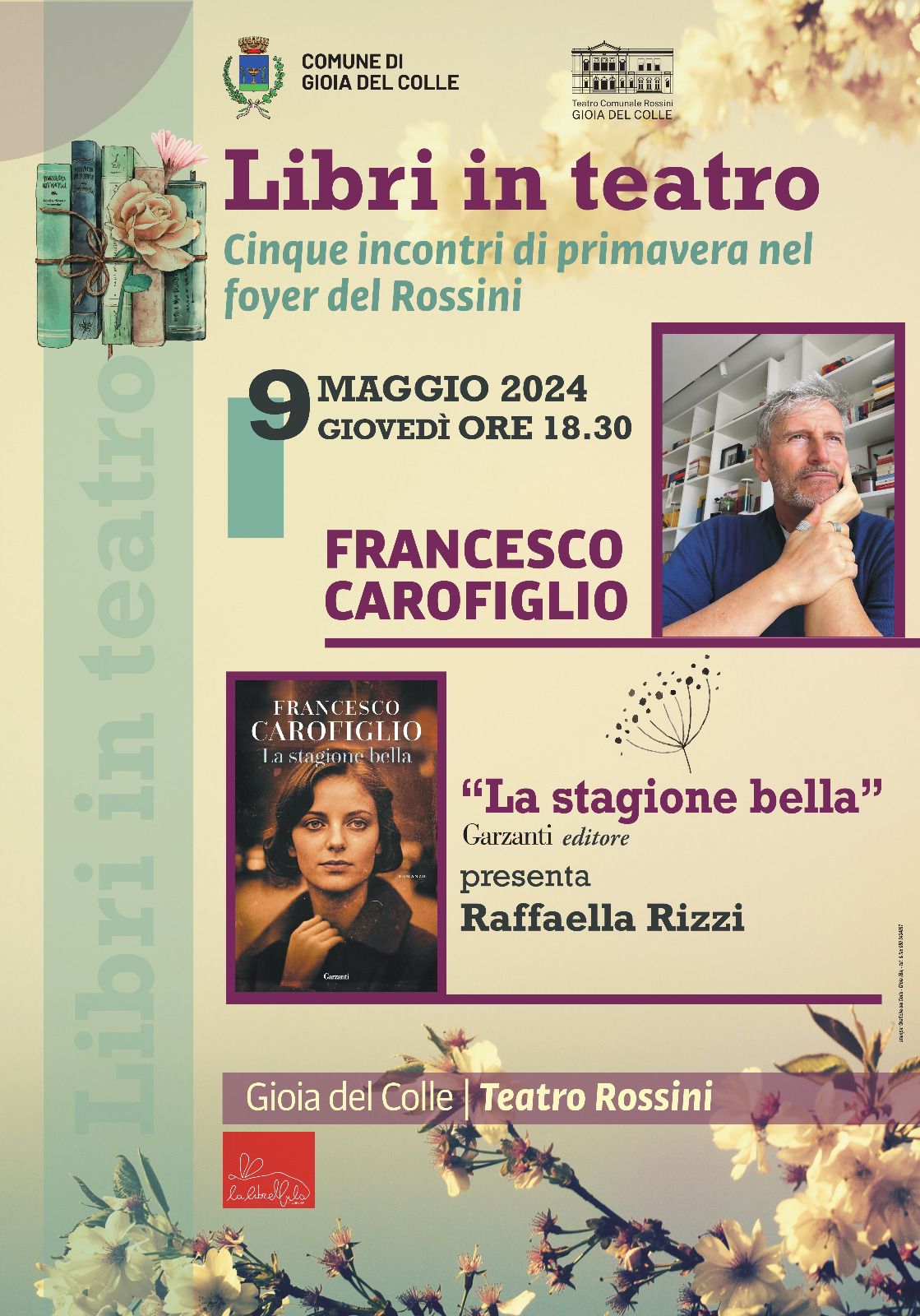 Questa sera, alle ore 18:30, nel foyer superiore del Teatro comunale Rossini, si terrà la prima presentazione in assoluto del nuovo libro di Francesco Carofiglio dal titolo “La stagione bella”.