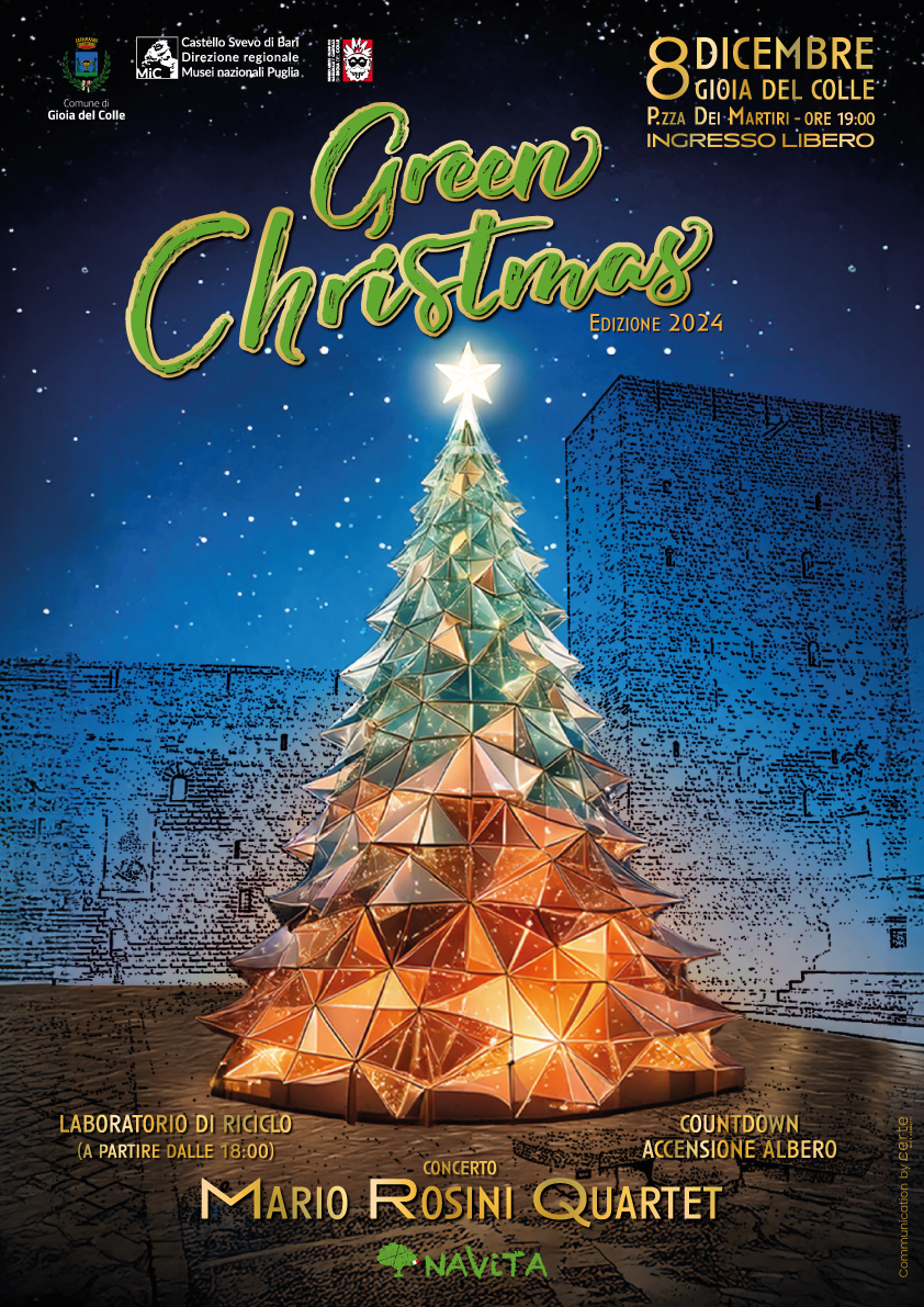 Gioia del Colle si prepara ad accogliere la magia del Natale. Domenica 8 dicembre, nello scenario di piazza dei Martiri del 1799 dominato dal Castello normanno-svevo, si terrà la seconda edizione dell’evento “Green Christmas”, promosso dall’amministrazione comunale in collaborazione con la Navita srl, la Direzione regionale Musei nazionali Puglia - Museo Archeologico Nazionale e Castello di Gioia del Colle e la società di comunicazione Certe per sensibilizzare la cittadinanza sulle tematiche ambientali anche durante le festività natalizie.