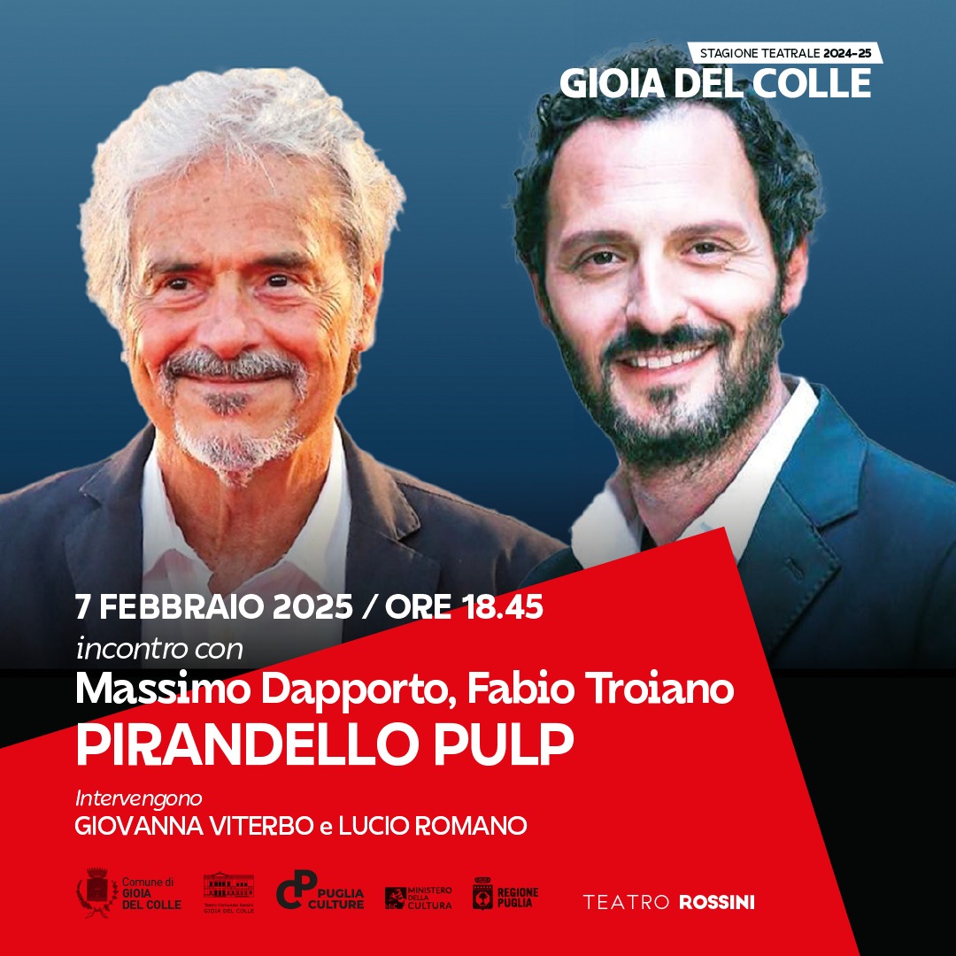 Venerdì 7 febbraio, alle ore 21:00, Massimo Dapporto e Fabio Troiano porteranno in scena lo spettacolo di Edoardo Erba dal titolo “Pirandello Pulp”, esempio di metateatro diretto dal regista Gioele Dix.