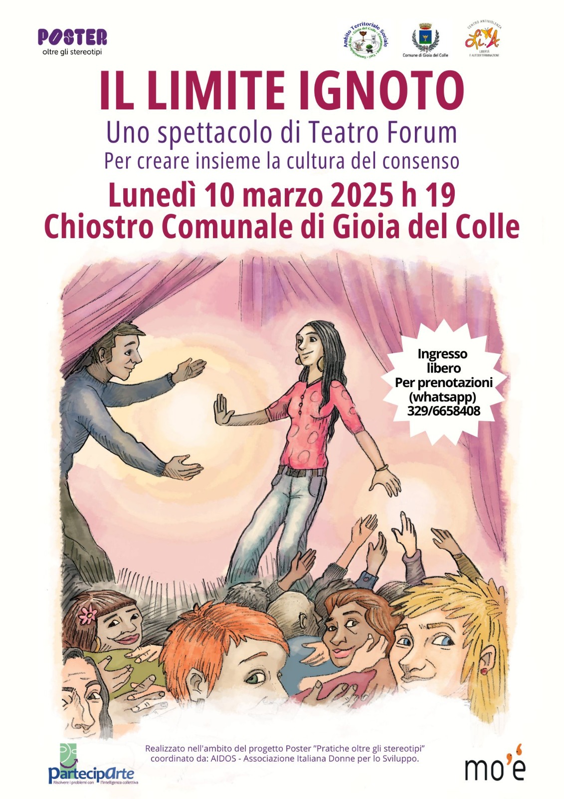 Lunedì 10 marzo il chiostro di Palazzo San Domenico ospiterà lo spettacolo di teatro forum dal titolo “Il limite ignoto” che, a partire dalle ore 19:00, sarà portato in scena dalla compagnia di Teatro dell’Oppresso PartecipArte.