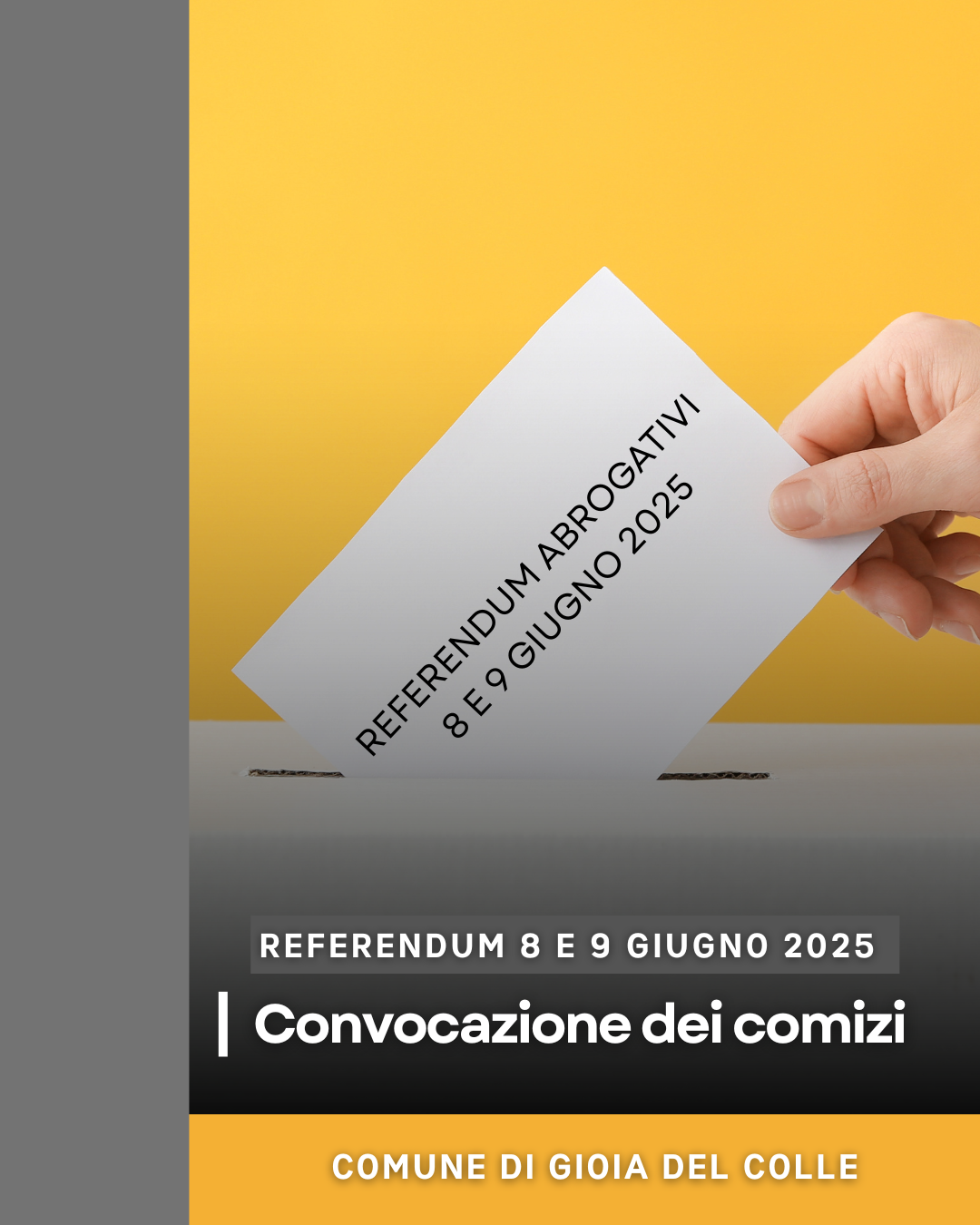 Il Sindaco rende noto che, con decreti del Presidente della Repubblica del 31 marzo 2025, pubblicati nella Gazzetta Ufficiale – Serie Generale n. 75 del 31 marzo 2025, sono stati convocati, per domenica 8 giugno e lunedì 9 giugno 2025, i comizi per lo svolgimento di n. 5 referendum popolari abrogativi.