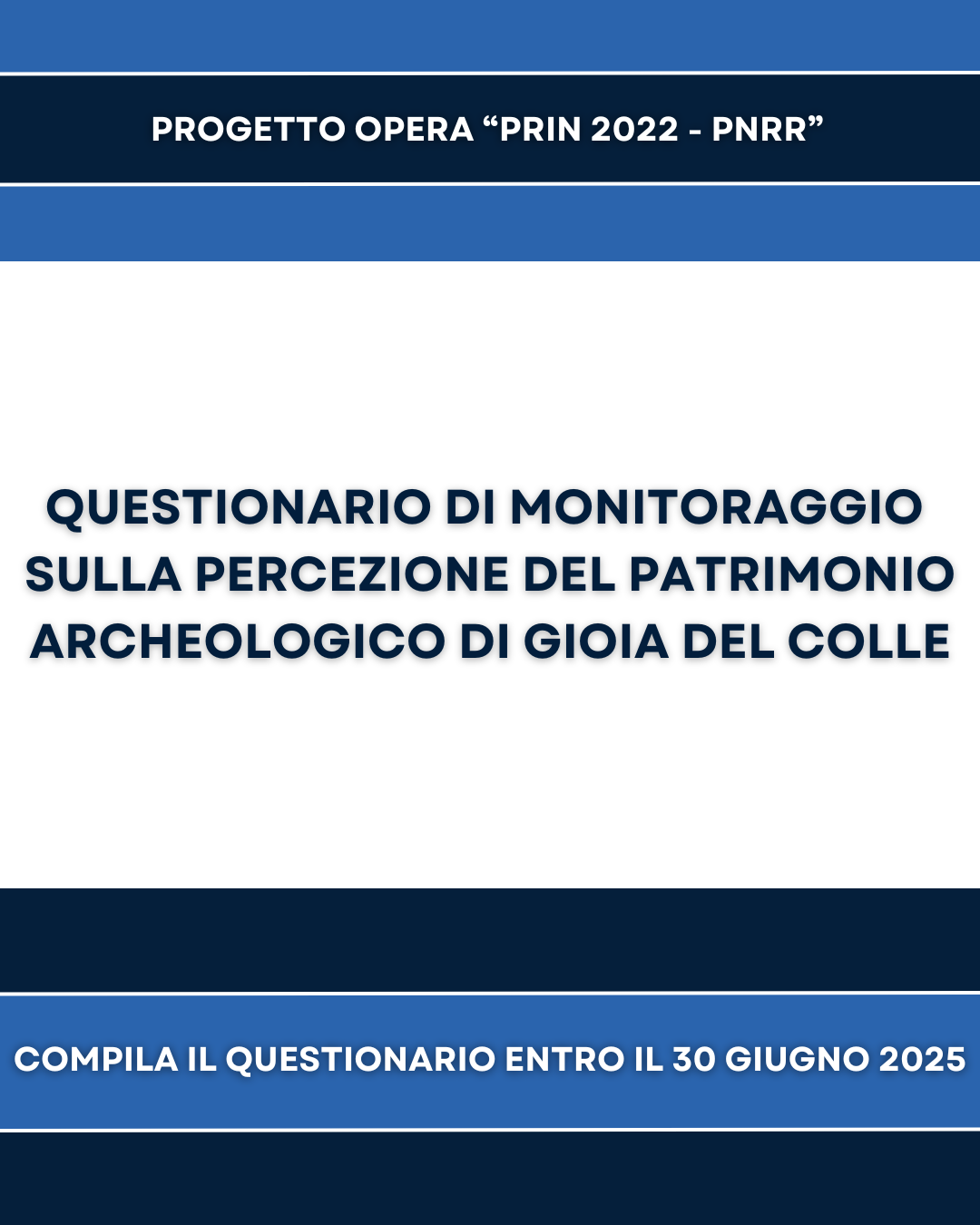 Progetto OPERA "PRIN 2022 - PNRR": entro il 30 giugno 2025 č possibile compilare il questionario di monitoraggio sulla percezione del patrimonio archeologico di Gioia del Colle