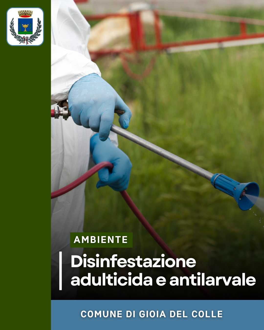 Domani, venerdì 20 giugno 2025, a partire dalle ore 23:30, sull'intero territorio comunale sarà eseguito l'intervento di disinfestazione adulticida e antilarvale.