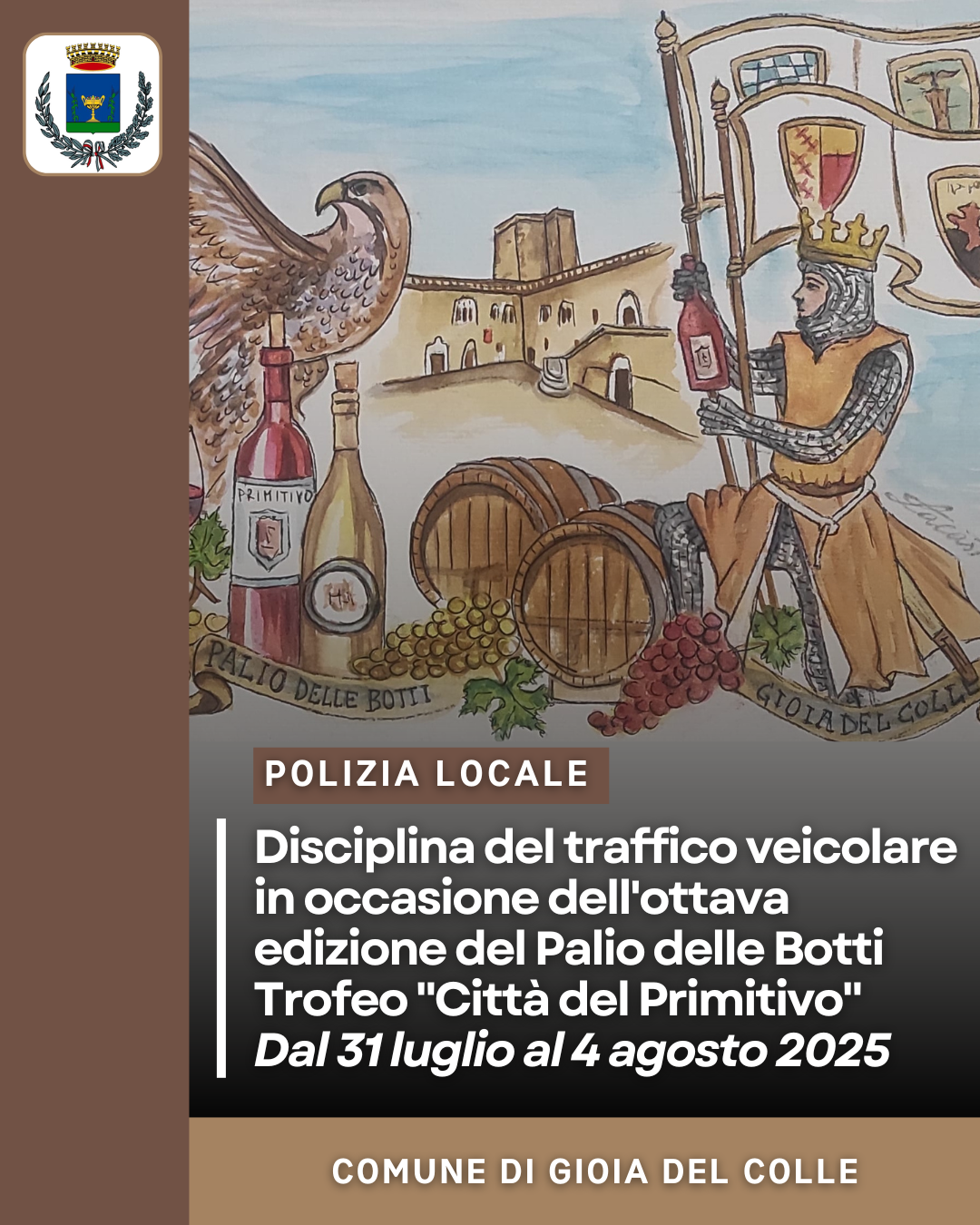 Disciplina del traffico veicolare in occasione dell'ottava edizione del Palio delle Botti Trofeo "Cittą del Primitivo" - Dal 31 luglio al 4 agosto 2025