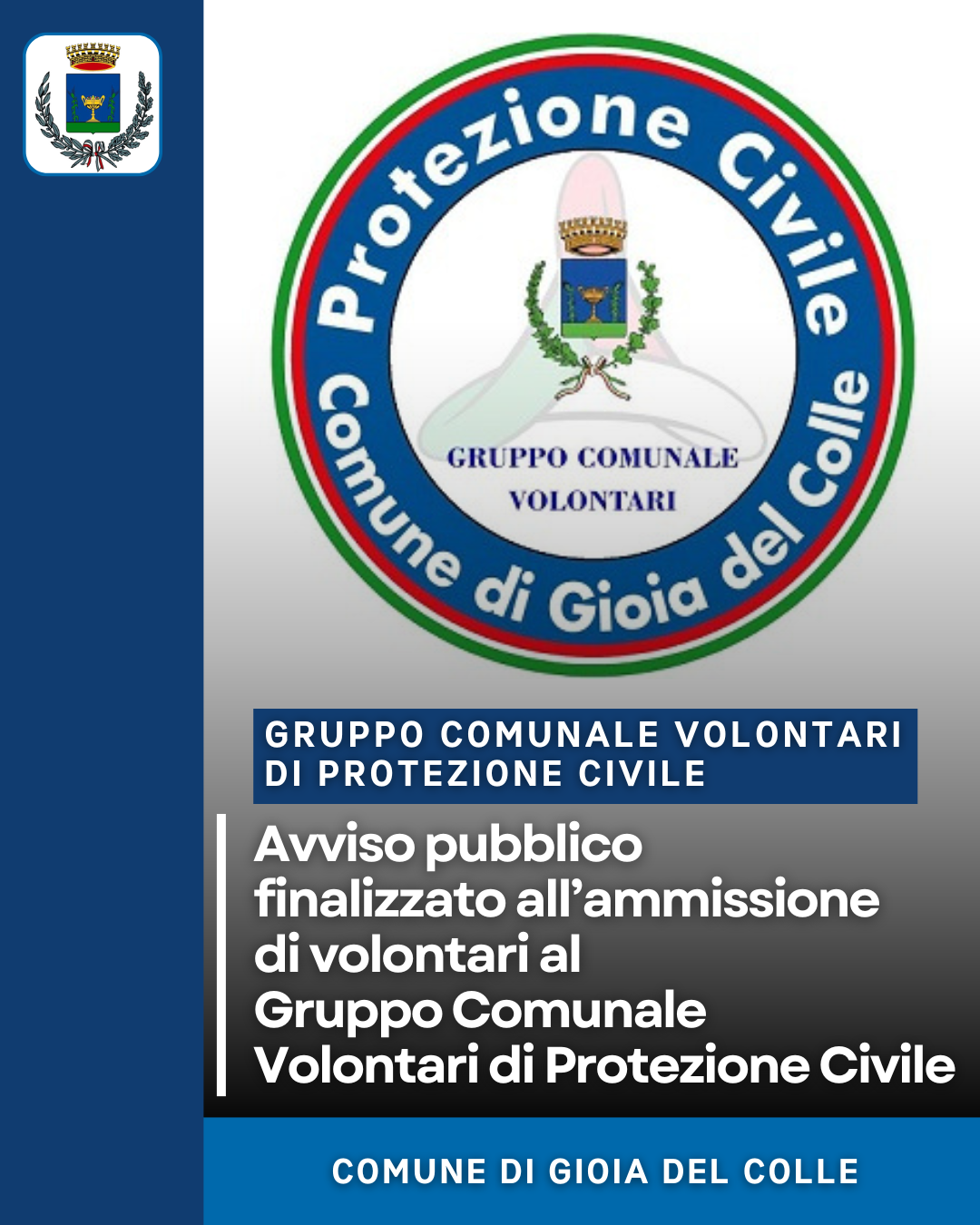 Con determinazione del Comandante della Polizia Locale n. 1016/2025 è stato approvato l’avviso pubblico finalizzato all’ammissione di volontari al Gruppo Comunale Volontari di Protezione Civile.