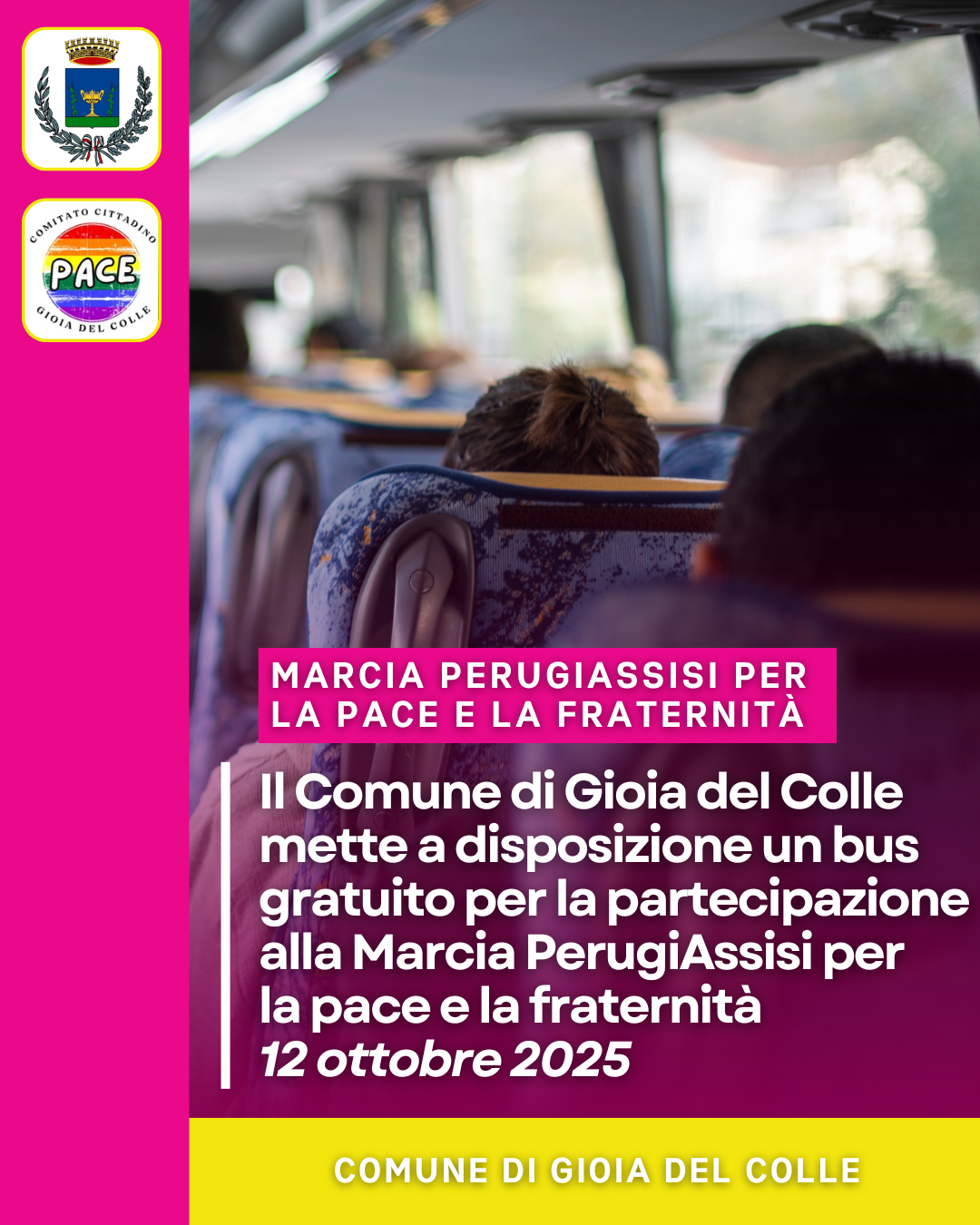 Per l’occasione, con deliberazione di Giunta n. 271/2025, l’Amministrazione comunale mette a disposizione un bus gratuito che consentirà a cinquantadue cittadini/e di prendere parte alla manifestazione.