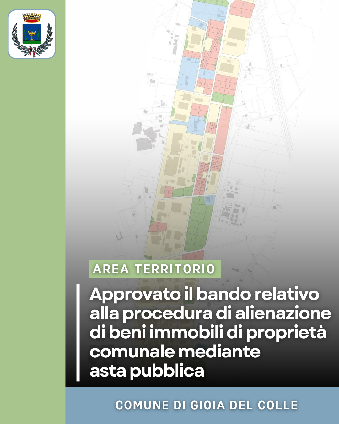 Con determinazione n. 1240/2025 del Responsabile dell’Area Territorio è stato approvato il bando relativo alla procedura di alienazione di beni immobili di proprietà comunale mediante asta pubblica.