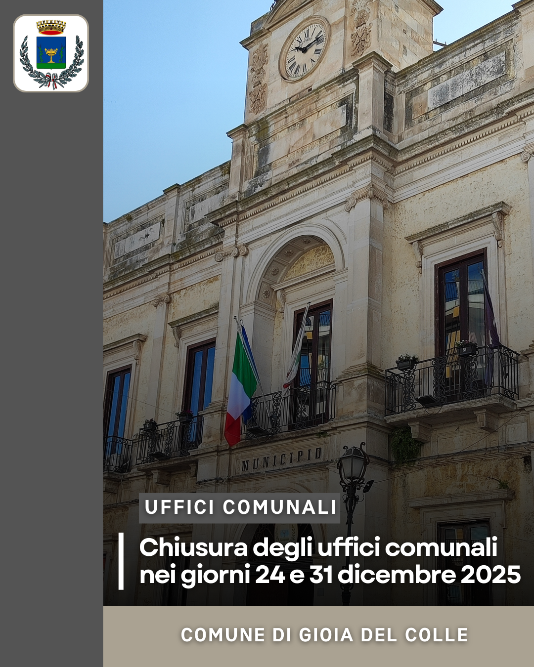 Chiusura degli uffici comunali nei giorni 24 e 31 dicembre 2025