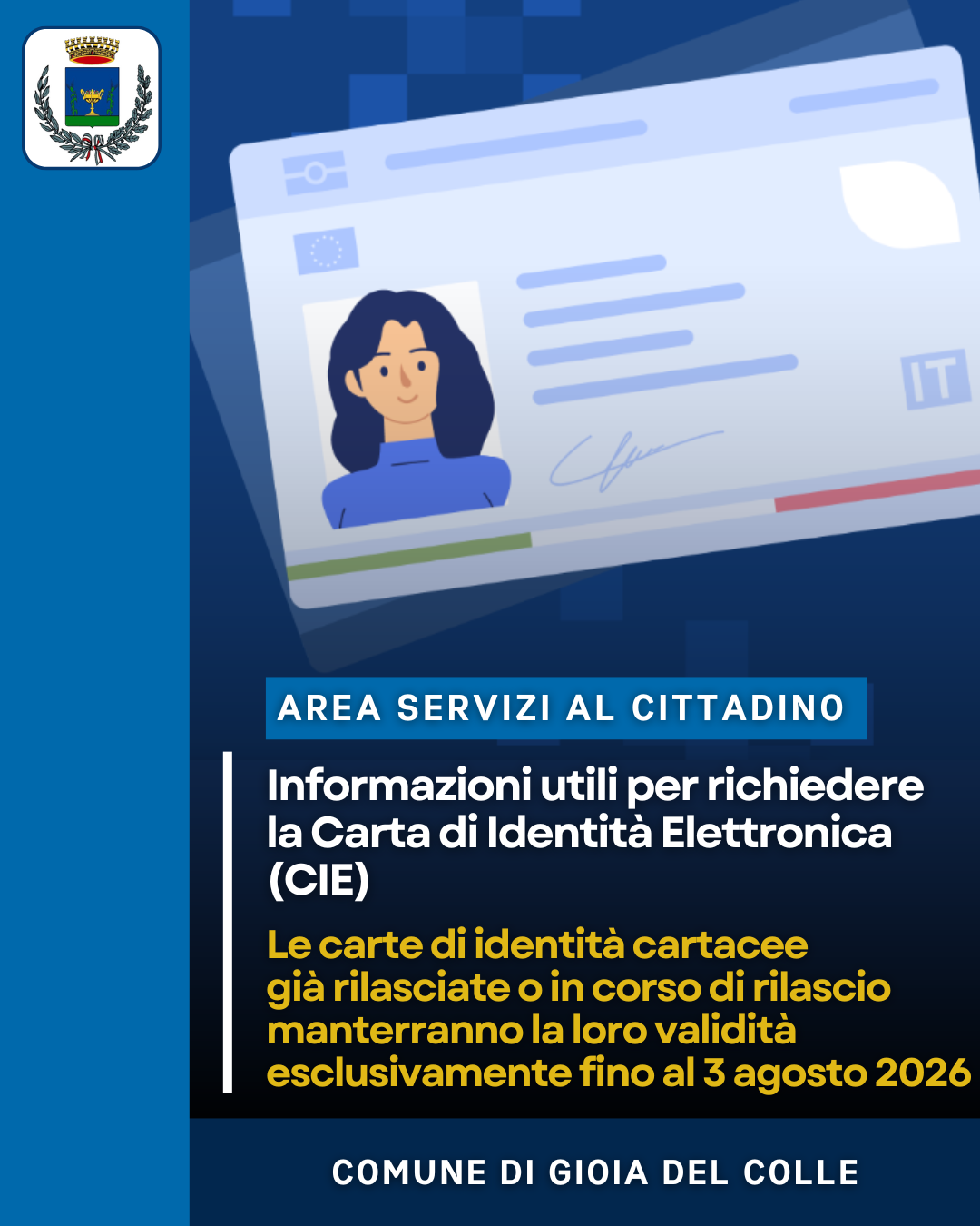 Si informa la cittadinanza che, in attuazione di quanto previsto dal Regolamento UE n. 1157/2019, le carte di identità cartacee già rilasciate o in corso di rilascio manterranno la loro validità esclusivamente fino al 3 agosto 2026.
