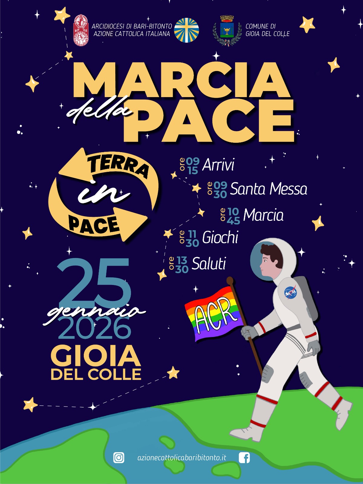 Sarà Gioia del Colle ad ospitare quest'anno la marcia della pace organizzata dall’Azione Cattolica Ragazzi dell’Arcidiocesi di Bari-Bitonto.