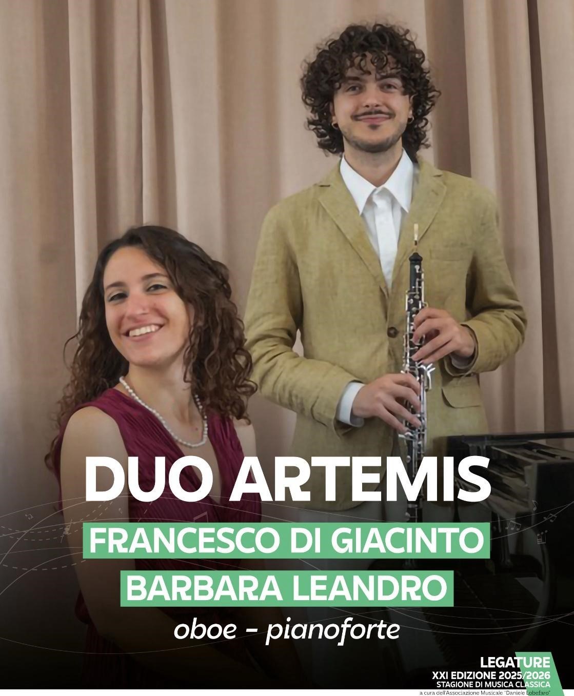 Domenica 1 febbraio 2026, alle ore 19:00, si esibirà sul palco il Duo Artemis, composto dall'oboista Francesco Di Giacinto e dalla pianista Barbara Leandro.