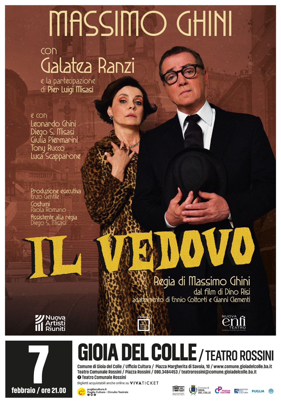 Dopo il grande successo ottenuto con Paolo Ruffini in “Quasi amici” nel 2024, sabato 7 febbraio 2026, alle ore 21:00, Massimo Ghini porterà in scena “Il vedovo”, esilarante commedia tratta dal capolavoro cinematografico del regista Dino Risi.
