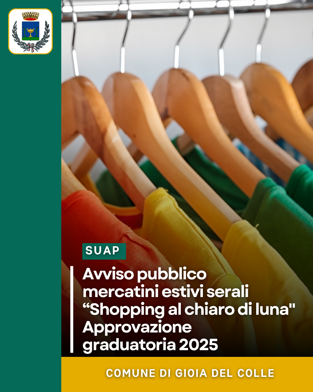 Si comunica che con Determinazione del Responsabile Area Urbanistica/Suap n.750 del 04.07.2025 è stata approvata la graduatoria relativa alle istanze di partecipazione