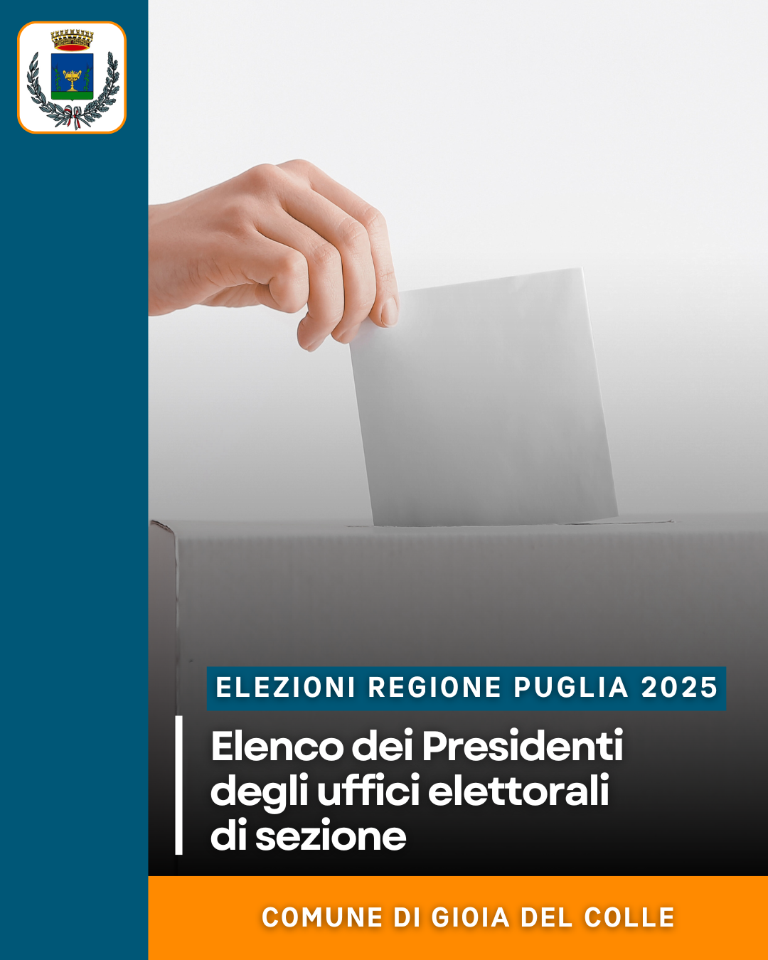 Si informa la cittadinanza che, con decreto 577/2025, il Presidente della Corte di Appello di Bari ha provveduto alla nomina dei Presidenti degli uffici elettorali di sezione del comune di Gioia del Colle.